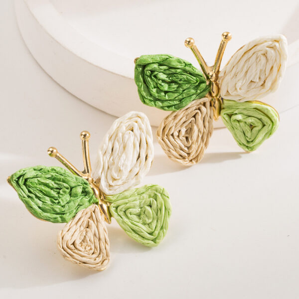 Bohemian Style Rattan Mix Green Butterfly Earrings