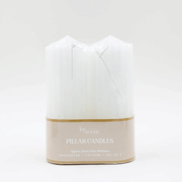 By Scents 7×19 cm Pillar Candle Set of 2 White