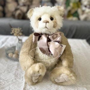 Meet Anita, a charming 60cm large plush fully jointed collectible teddy bear, proudly featured in Charlie Bears’ newly released 2023 “The Clock Tower Collection”.