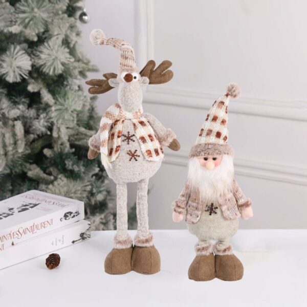 Add a cozy festive touch to your home with this charming pair of Christmas plush figures! Featuring a cute Reindeer and a jolly Santa, both dressed in matching beige and brown knitwear with plaid accents, these decorations bring warmth and whimsy to your holiday décor.
