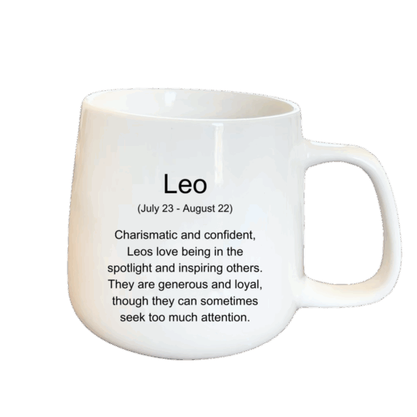 For the regal Leo, this Zodiac Ceramic Mug radiates confidence and charisma, just like you! The majestic lion design shines in a burst of colors, making it a perfect statement piece for your morning coffee or afternoon tea, while celebrating your bold and fearless personality.