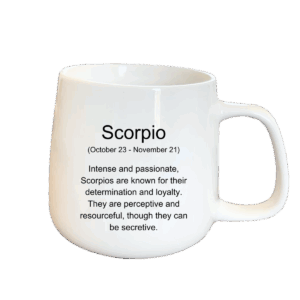 Intense and mysterious, the Scorpio Zodiac Ceramic Mug displays a striking, colorful depiction of the scorpion, perfect for representing your passionate nature. Whether you’re sipping a hot coffee or tea, this mug is an ideal companion for moments of deep thought and reflection.
