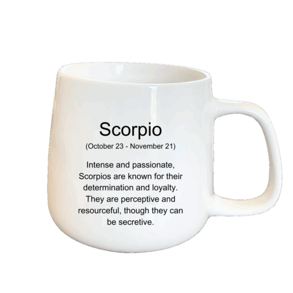 Intense and mysterious, the Scorpio Zodiac Ceramic Mug displays a striking, colorful depiction of the scorpion, perfect for representing your passionate nature. Whether you’re sipping a hot coffee or tea, this mug is an ideal companion for moments of deep thought and reflection.