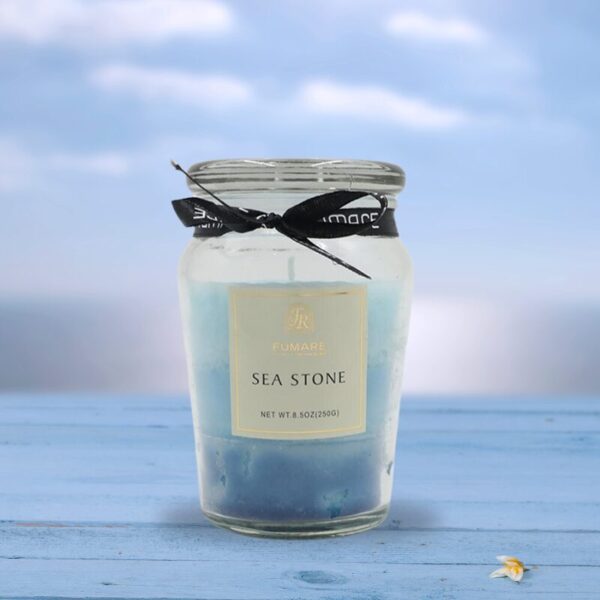 Immerse yourself in the serene ambiance of Fumare Pillar Glass Shadow Scented Candle in Sea Stone.