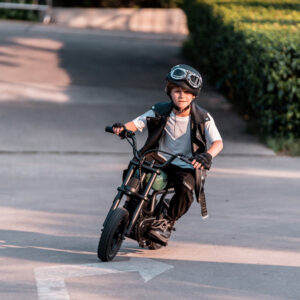 The Pioneer 12 mini electric motorcycle is fitted with a 24V 160W motor and features an LED headlight, making it perfect for stylish outdoor adventures for children.