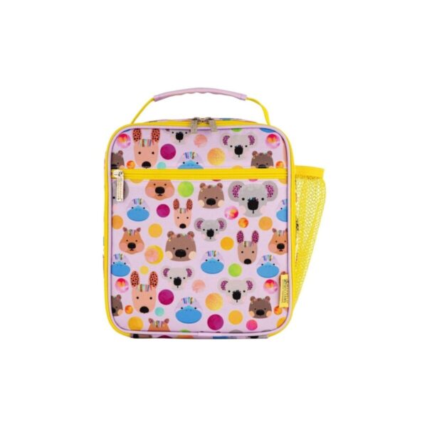 Add some fun to lunchtime with this pink-insulated children’s lunch bagĀ from the Critters collection. Designed with artist Kasey Rainbow, it features a quirky cast of animal characters with the artist’s trademark bright colors and bold patterns.