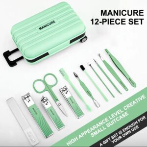 Containing 12 essential tools for hand, foot, and facial care, this set offers greater value than purchasing individual grooming tools separately. Packaged in a compact and travel-friendly PU leather case with a pink zipper, it is perfect for home use, travel, or on-the-go grooming.