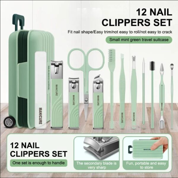 Containing 12 essential tools for hand, foot, and facial care, this set offers greater value than purchasing individual grooming tools separately. Packaged in a compact and travel-friendly PU leather case with a pink zipper, it is perfect for home use, travel, or on-the-go grooming.