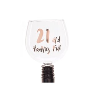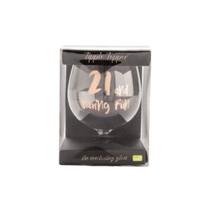 Design(s): Clear and everlasting wine glass with 21 and Having Fun in bold font