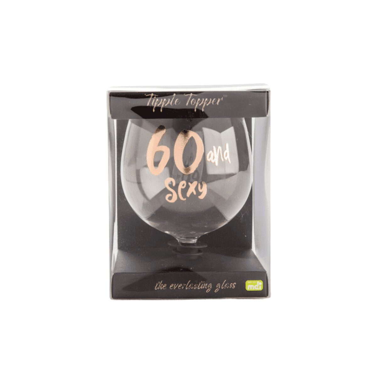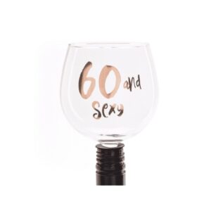 Design(s): Clear and everlasting wine glass with 60 and Sexy in bold font