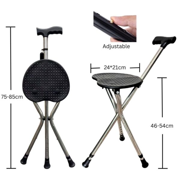 Adjustable Height – Cane height adjusts from 75–85cm; seat height adjusts from 46–54cm to suit different users.