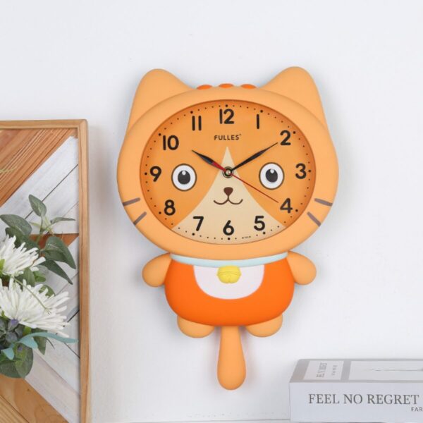 The cat’s tail gently moves side to side like a pendulum, bringing the clock to life.